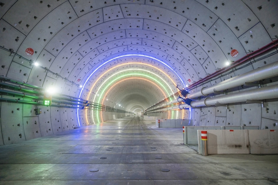 施工过程中,项目团队创新运用“数字盾构智慧管控中心”,对掘进参数、注浆质量、设备状态实行24小时动态监控,依托大数据分析实现智能决策与精准施工。同时,项目积极践行绿色建造理念,配套的风电工程已实现并网发电,为施工现场提供清洁动能,成功构建起“隧道+清洁能源”的交互融合模式,实现了能源的自给自足与高效利用,标志着国内首座“零碳隧道”示范工程在海太长江隧道项目成功落地。